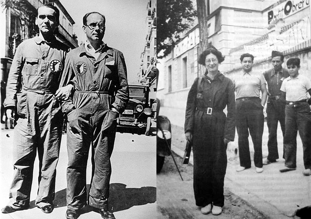 Non solo. La foto sembra proprio scattata a Barcellona. Anche perché alle sue spalle si nota un tipico platano delle Ramblas (almeno nelle rare occasioni in cui la foto viene pubblicata integralmente, di solito l’albero risulta “tagliato”). Nonostante i buoni propositi, Simone Weil venne presto allontanata dall’impiego delle armi. Durante l’addestramento militare i suoi compagni rischiavano di venir colpiti dalla maldestra volontaria (forse per scarsità di diottrie) e quindi si preferì dirottarla alle cucine. Anche qui però incontrò qualche difficoltà, ustionandosi seriamente per aver messo il piede in una padella di olio bollente. Alla fine decise quindi di smobilitare individualmente rientrando in Francia (su richiesta degli apprensivi genitori che l’avevano raggiunta).