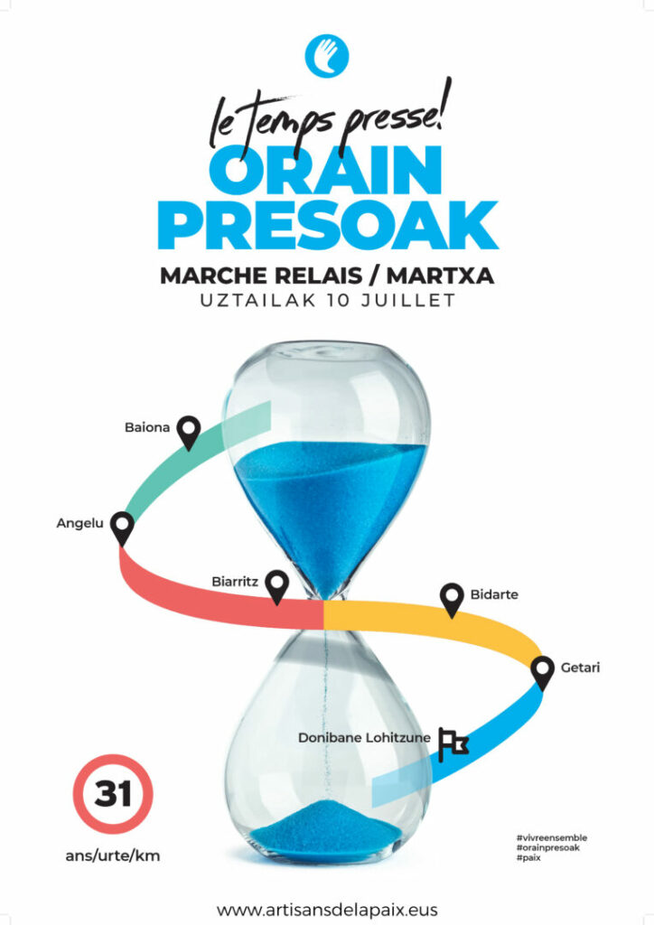 Il 10 luglio, dunque, partenza da Bayonne alle ore 8:00. I partecipanti passeranno per Anglet, Biarritz, Bidart e Getari. Arrivo previsto intorno alle 17:00, a Saint-Jean-de-Luz, con discorso finale nel centro della città. La Marcia passerà principalmente sul bordo della costa. Dalla prossima settimana sarà istituito un sistema di registrazione per valutare il numero di partecipanti e saranno disponibili anche tutti i dettagli tecnici.