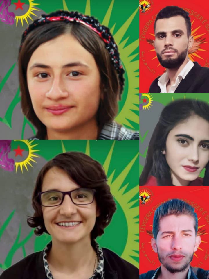 Questi i nomi delle cinque vittime, forniti dall’Amministrazione autonoma del Nord e dell’Est della Siria (AANES): Nûjiyan Ocalan, Viyan Kobanê, Rojîn Ehmed Îsa, Mirhef Xelîl Îbrahîme un giovane chiamato Walid (di cui non si conosce ancora il nome completo). Tutti loro militavano nel Movimento delle giovani donne o nel Movimento dei giovani rivoluzionari. Almeno quattro degli altri feriti sono ancora all’ospedale.