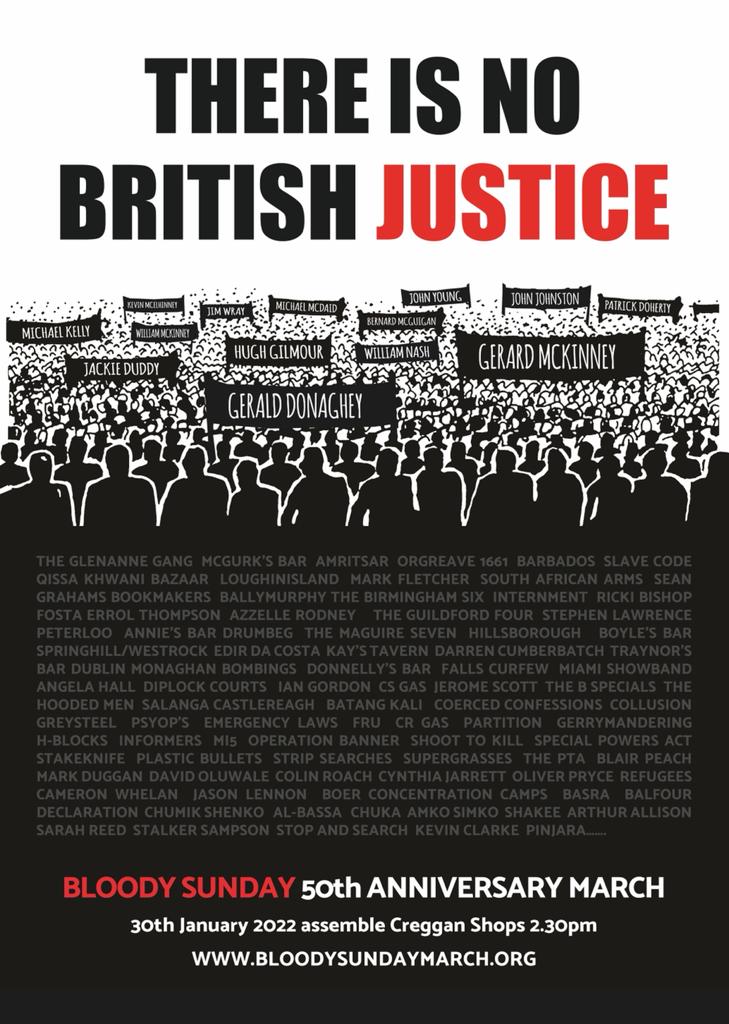 Numerosi eventi saranno organizzati alla fine di gennaio 2022 per ricordare il cinquantesimo anniversario del “Bloody Sunday”, con lo slogan “There is no british justice”.