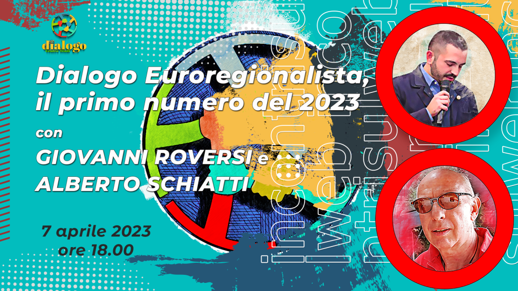Il 7 aprile prossimo, alle ore 18, su questo Blog e su tutti i canali social ufficiali di Centro Studi Dialogo, Giovanni Roversi, presidente dell’associazione, e Alberto Schiatti, responsabile alla redazione del trimestrale, presenteranno il primo numero del 2023 (settimo anno di pubblicazione) di Dialogo Euroregionalista.